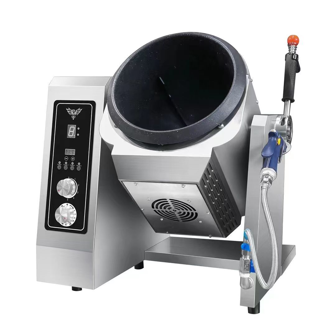 - Gas: One-button ignition + whistling prompt, 12-burner high-power burner to recreate the smoky aroma of traditional Chinese cooking; four sets of second-level memory timers, 360-degree automatic stirring; one person can operate three units simultaneously, also equipped with two pot types to suit traditional stir-frying needs.