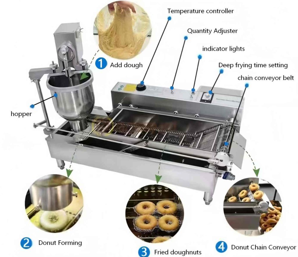 - Quantity Regulator: Controls the number of donuts produced per cycle for flexible batch sizes.